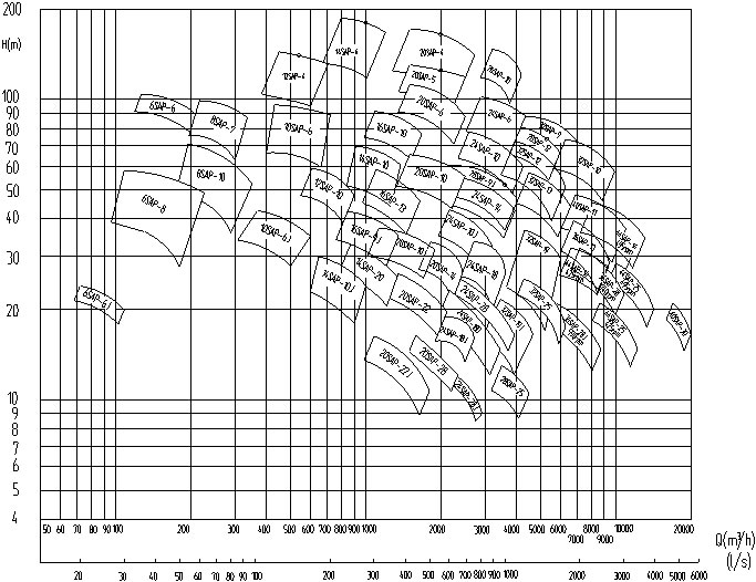 ● 性能范围:流量:72--9900m³/h  扬程:6.8—104m